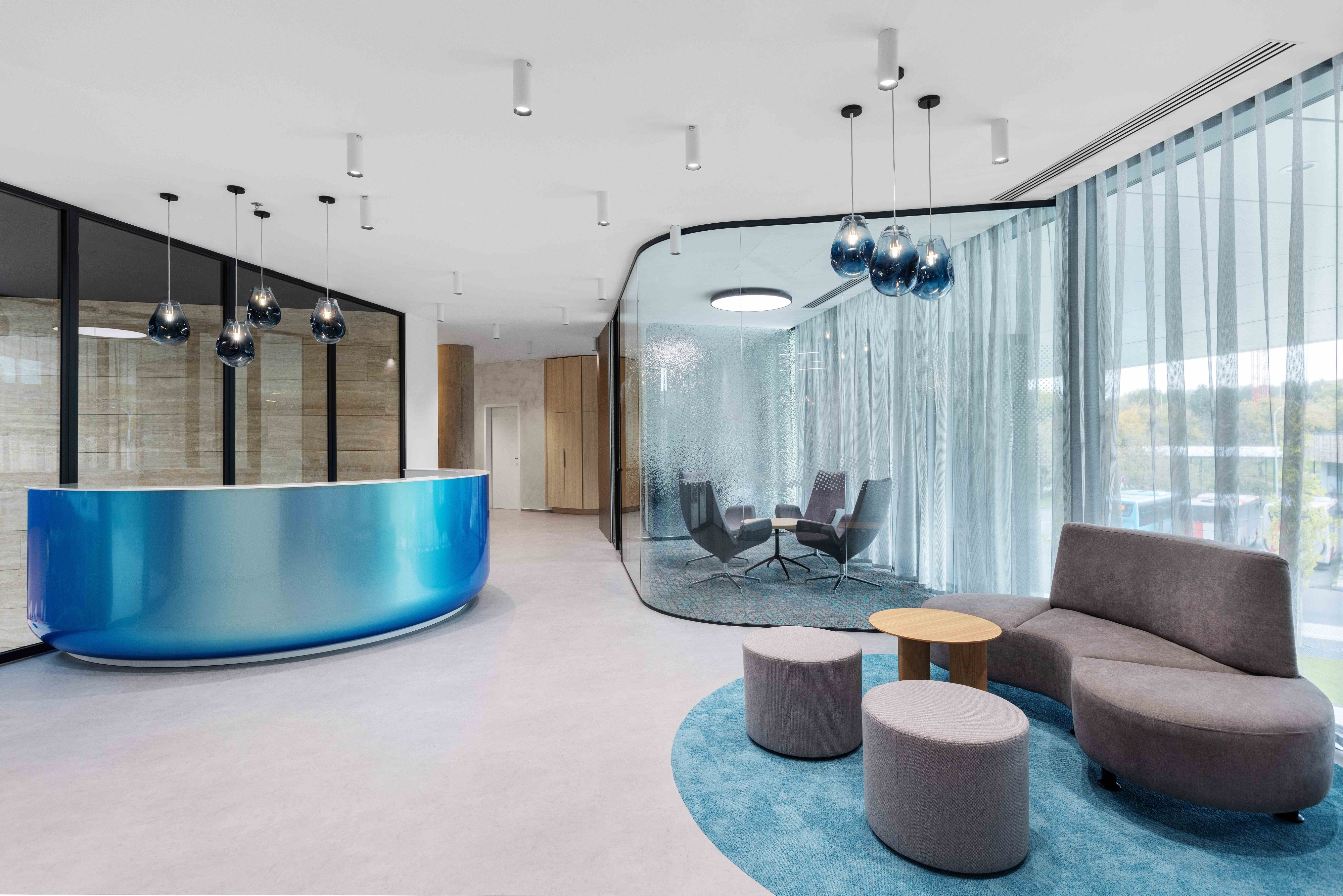 Náš návrh navazuje na špičkové technologie, výrazný exteriér i interiér společných prostor a propisujeme čistotu a minimalismus firemní identity.