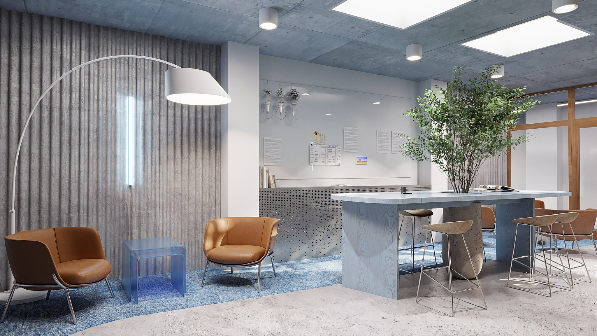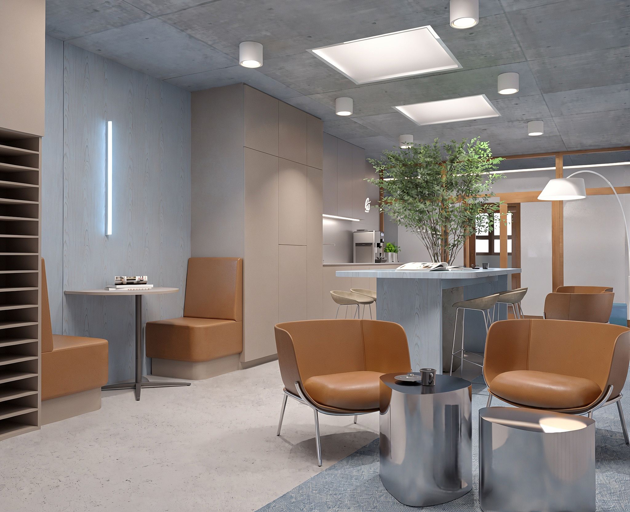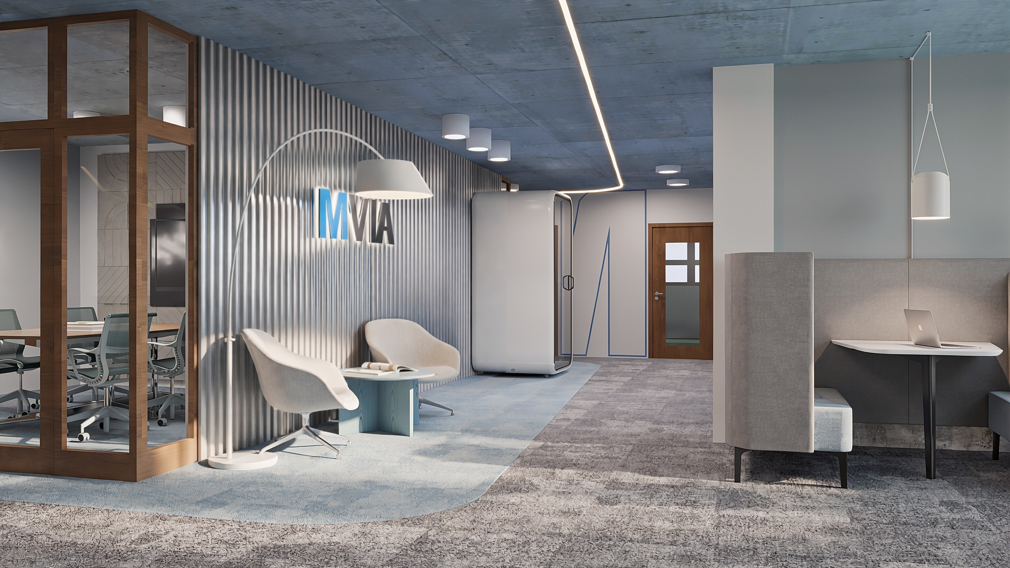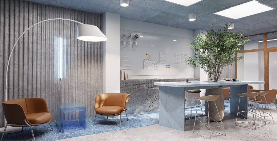 Rekonstrukce kancelářských prostor s přiznaným modrým betonovým stropem byla výzva. Podívejte se, jak jsme tento krásný materiál podpořili.