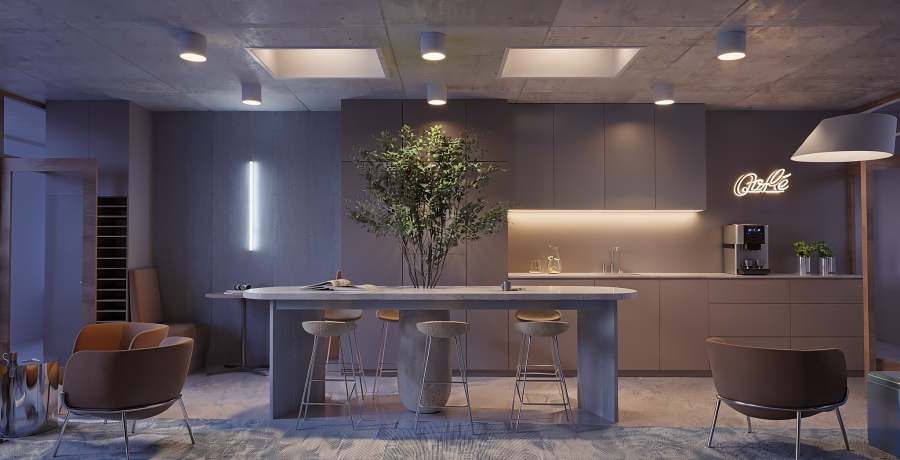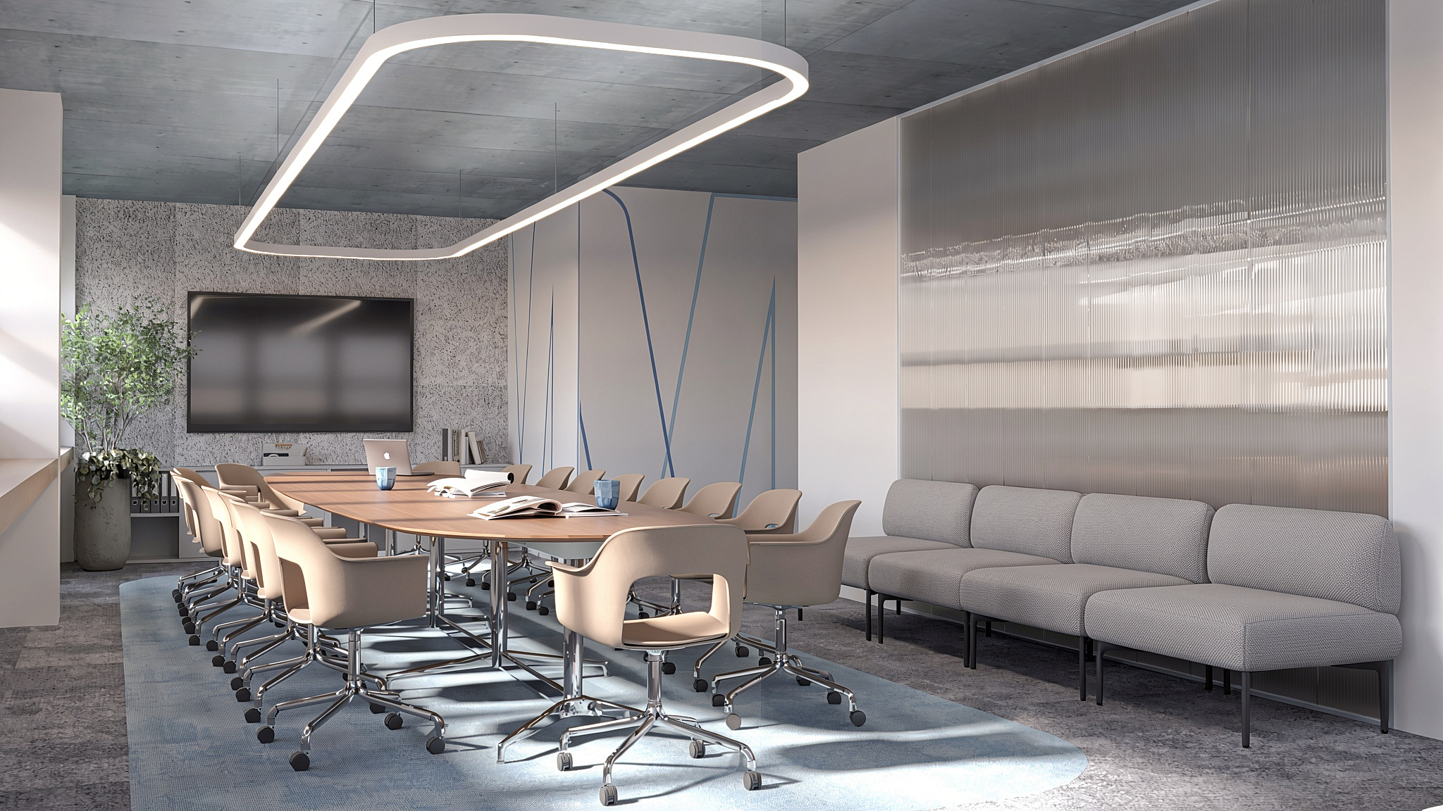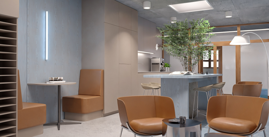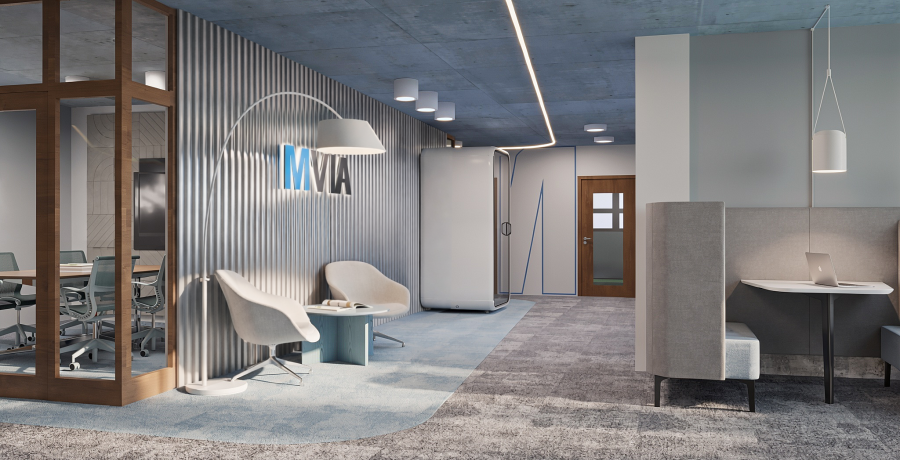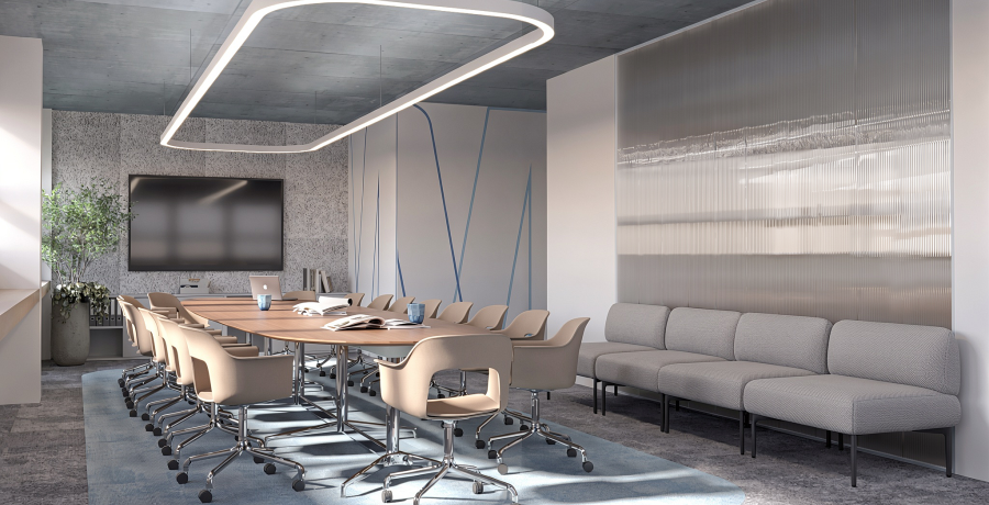 Rekonstrukce kancelářských prostor s přiznaným modrým betonovým stropem byla výzva. Podívejte se, jak jsme tento krásný materiál podpořili.